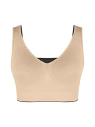 DuoFlip Bra is your two-in-one essential—reversible, wireless, and effortlessly smoothing for a clean, confident silhouette. Designed with a double-layer front and removable pads, it offers coverage you can trust with a soft, barely-there feel. Seamless knitting and high-stretch yarn hug your curves without digging in, while the higher back gently smooths for a polished finish. Flip it from black to nude in seconds to match every outfit.