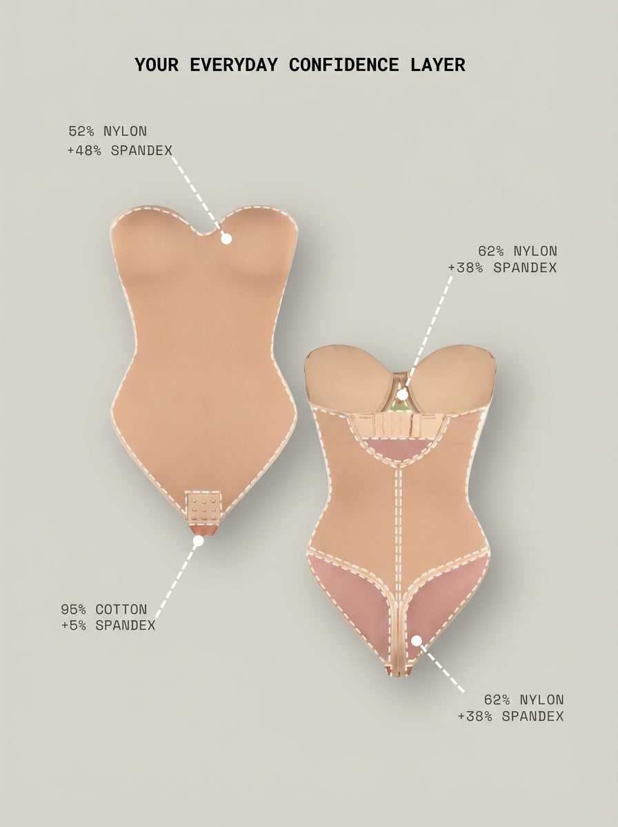 - Anti-Slip Silicone Band keeps the bodysuit secure for strapless wear