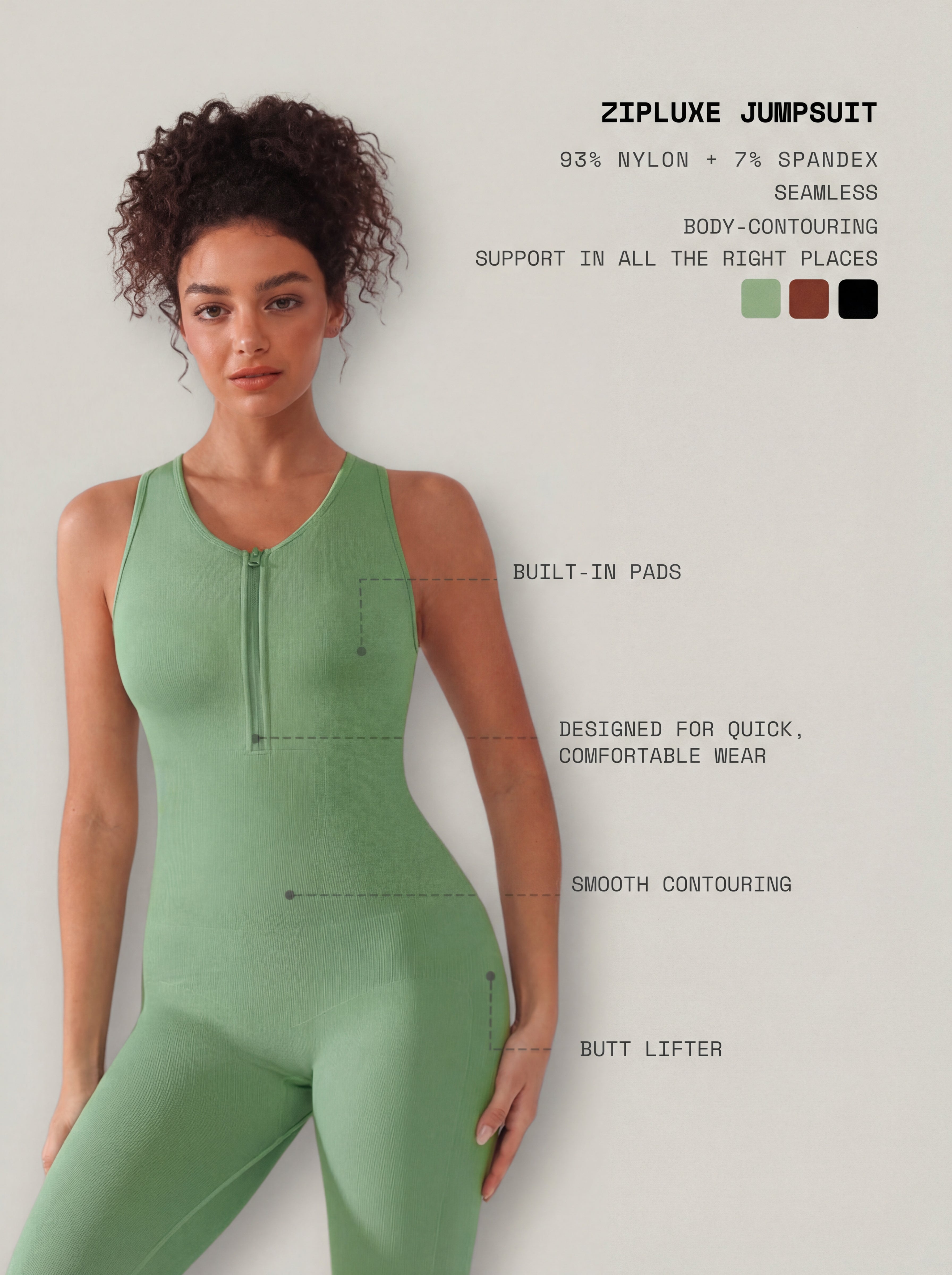 ZipLuxeJumpsuit is the first catsuit that actually snatches my waist and stays smooth—plus the zip front makes it so easy to style and get in and out of.