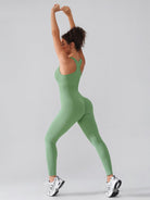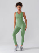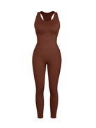 Meet ZipLuxeJumpsuit, your sleek 2-in-1 catsuit that sculpts like shapewear and performs like activewear. The zip-front neckline lets you style your coverage, while the seamless ribbed knit smooths the waist and abdomen with breathable stretch comfort. Built-in removable pads deliver easy, braless support, and the racerback cut keeps you moving freely. Finished with peach-lift contouring and full-length legs for a long, lean silhouette.