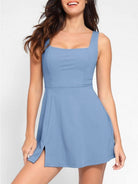 Meet Waistdear Dress, a 2-in-1 tennis dress that blends sleek performance with sculpting support. The pet-hair-resistant outer layer stays polished, while the high-stretch inner lining and tummy-control mesh smooth the waist and contour the legs. A square neckline with supportive straps flatters the upper body, and removable pads let you customize coverage. Finished with built-in shorts, pockets, and an easy-access design for quick restroom breaks, it’s made for movement and confidence.