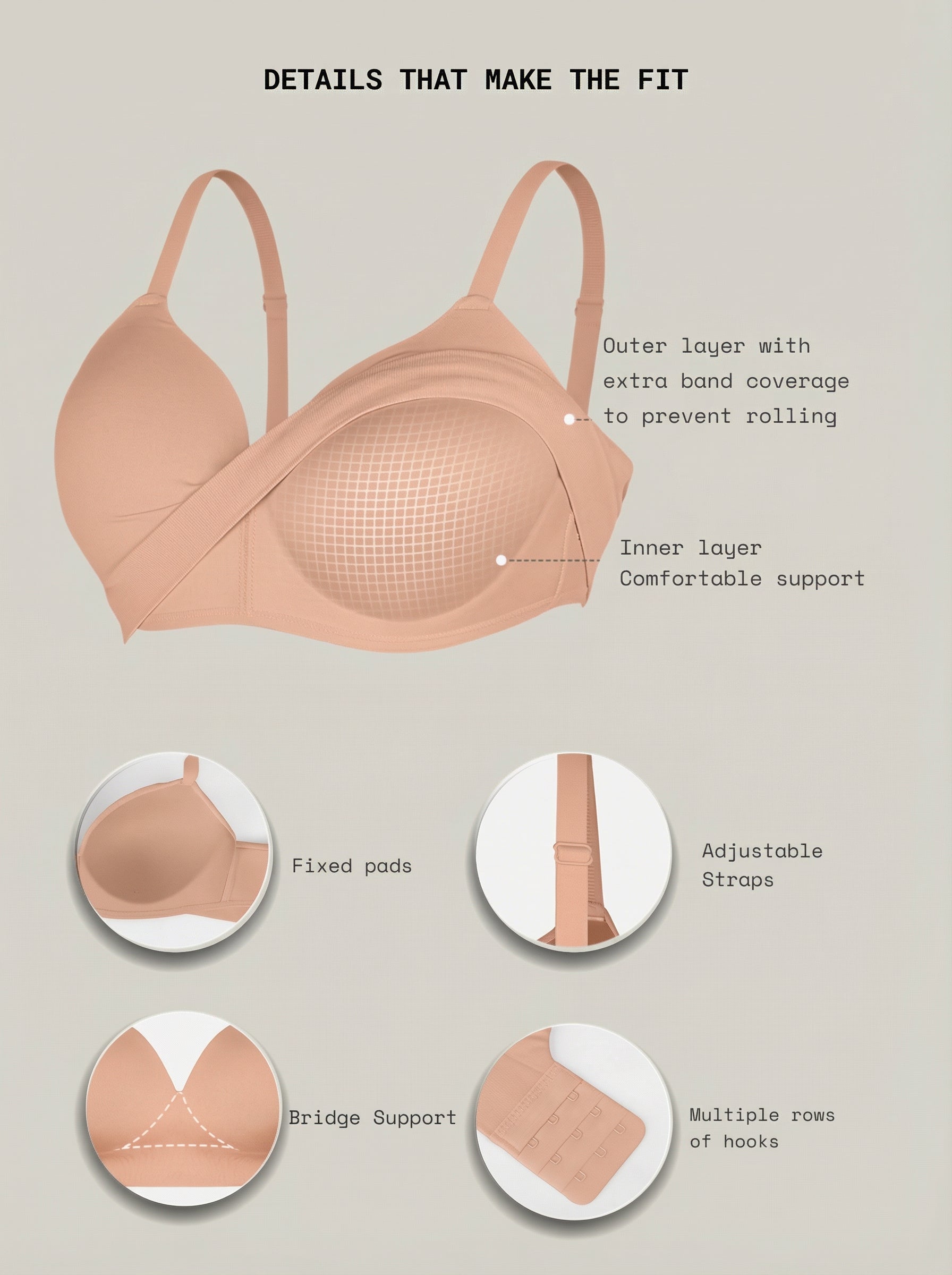 1. LiftLuxe™ Wireless Bra fits true to size with stretch—select your regular size for the most flattering, supportive fit.