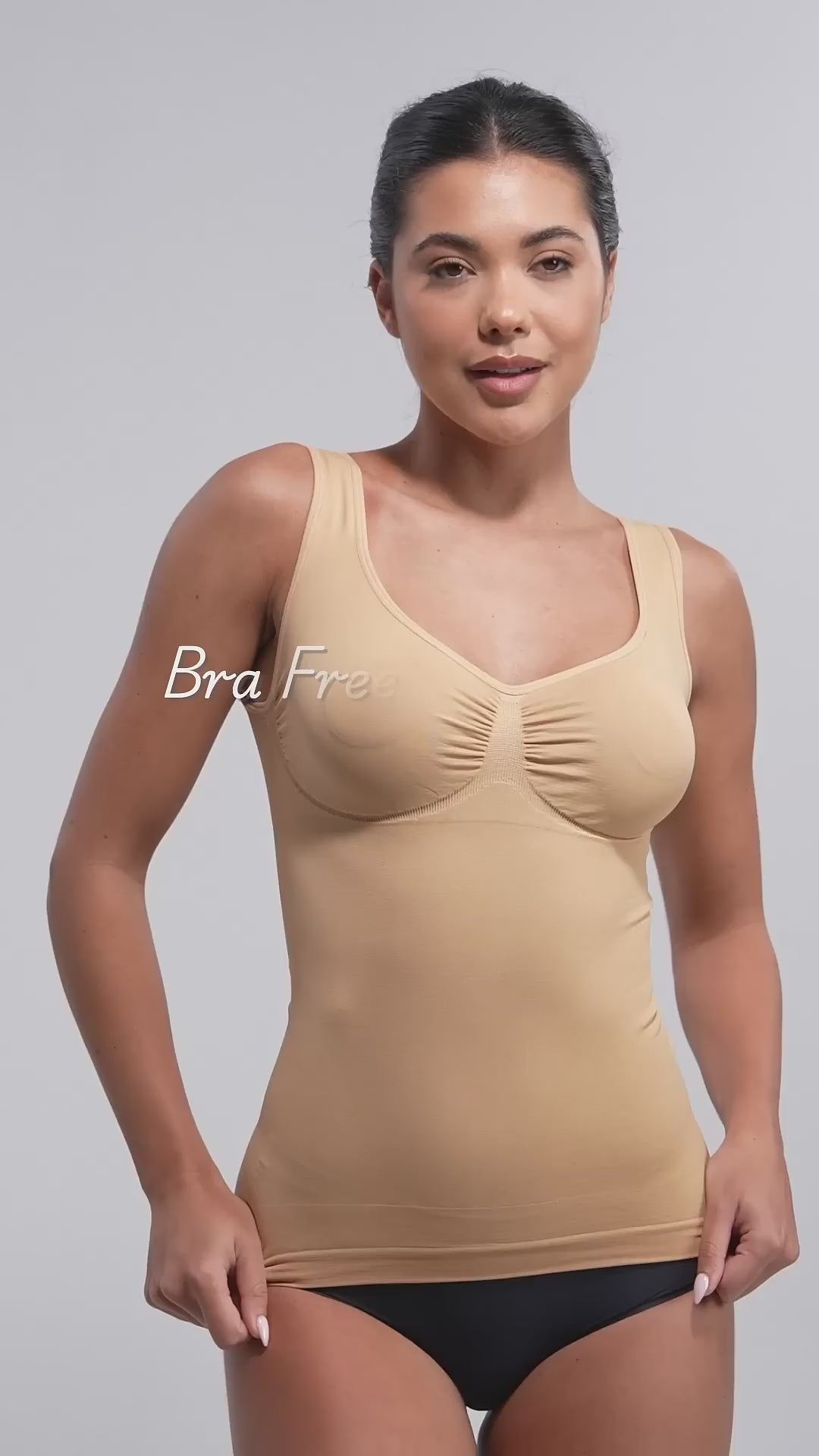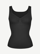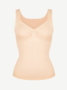 Soft, sculpting, and effortlessly flattering, LumaSmooth Tank is designed to smooth the waist and abdomen while offering natural, wire-free bust support. The seamless construction and high-stretch fabric gently contour the body without restriction, creating a refined silhouette that feels comfortable all day. A pleated bust and diamond neckline enhance natural curves while eliminating the need for a bra. Finished with a loose hem that prevents rolling, it’s perfect for everyday wear, layering, or lounging.