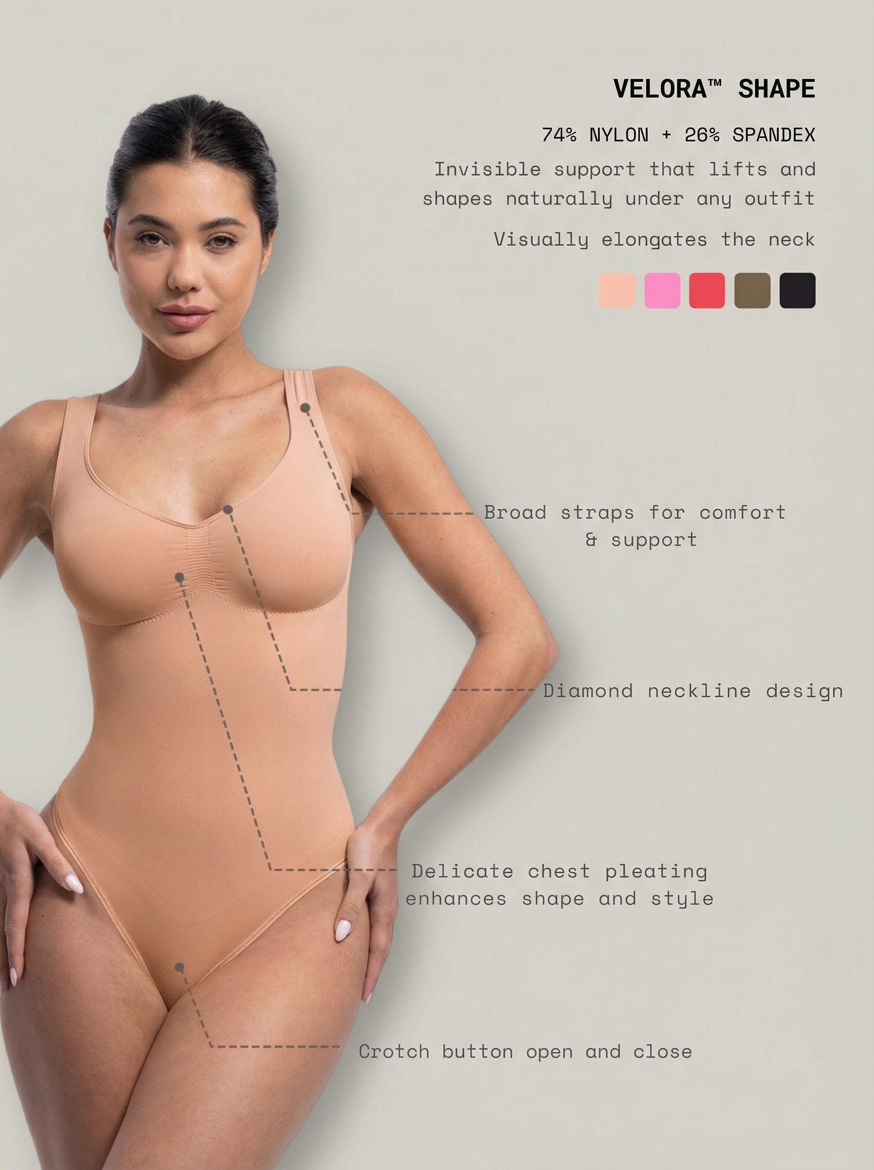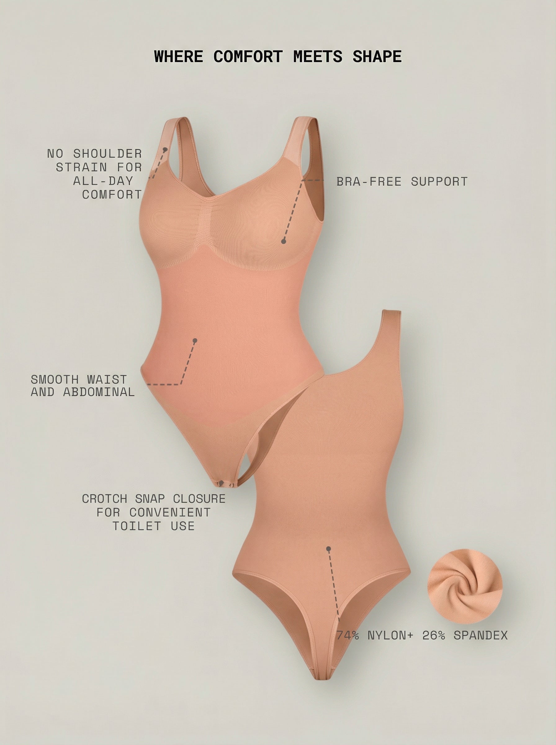 Effortlessly sculpting with a barely-there feel, LuxeSculpt™ Bodysuit is a seamless thong bodysuit designed to smooth the waist and abdomen while offering natural bust support. The elegant diamond neckline and ruched bust enhance your silhouette, creating a lifted, flattering shape without compression discomfort. Crafted with breathable, high-elastic fabric, it disappears under clothing while delivering confident, all-day smoothing.