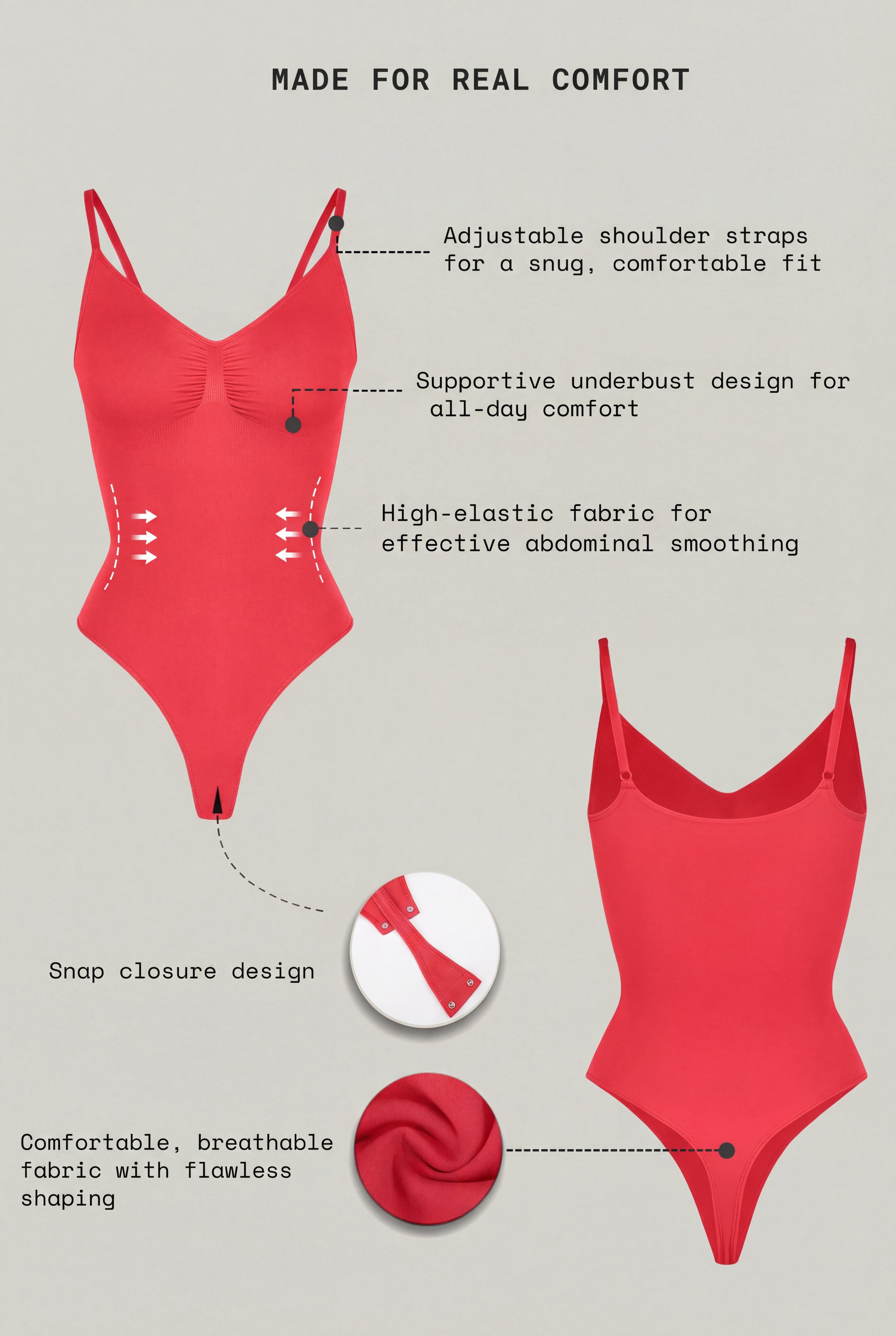 - Supportive underbust design for gentle lift and comfortable hold