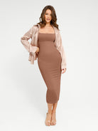 ShapeFit Dress is your sleek, seamless shaping slip—designed to smooth the waist and lower abdomen with a comfortable 360° hug while keeping your look clean and polished. The square neckline and slim straps frame the collarbone beautifully, and the double-layer bust with removable cups lets you go confidently braless. Finished with a soft, textured feel and an easy-walk back slit, it’s the effortless foundation (or standalone moment) your wardrobe will reach for on repeat.